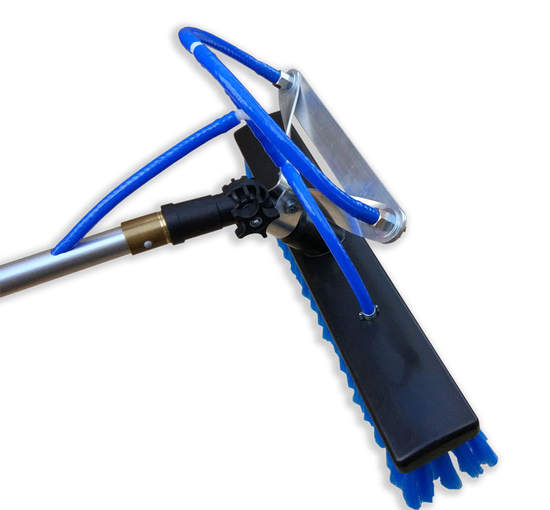 - 8m Aluminium Teleskopstange mit innengeführtem Wasserschlauch und handelsüblichem Wasseranschluss (Transportlänge: ca. 2,30m)